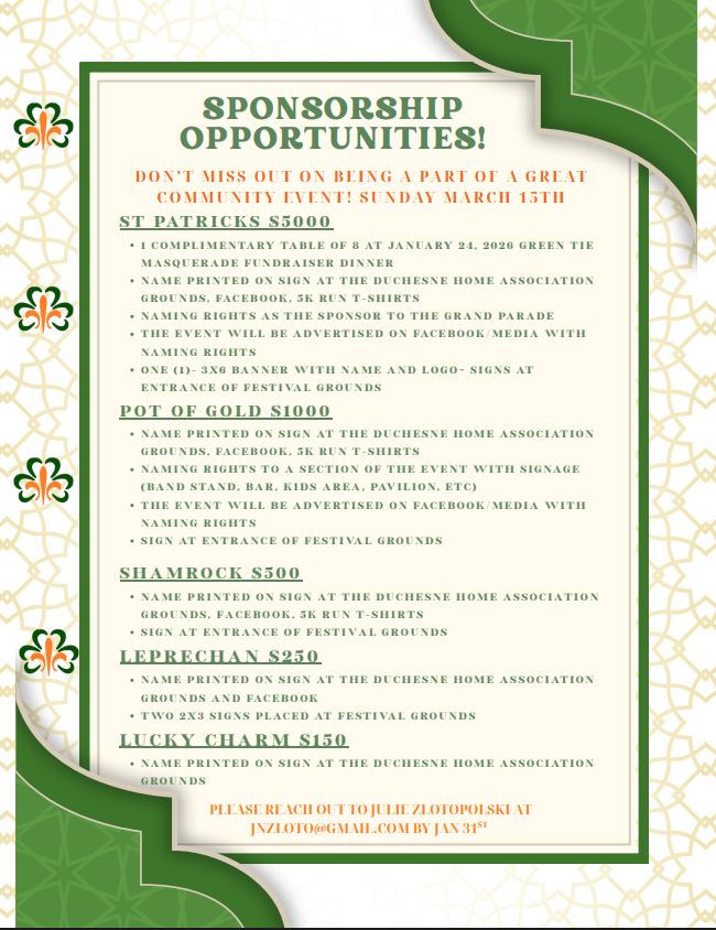 “Thank you to all of our sponsors, but especially Commercial Bank as they continue to serve as our headlining St. Patrick Level Sponsor and ensure we have an amazing event”